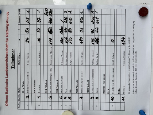 Den Titel des Vereinsmeisters der Rettungshunde errang Michaela Kleehammer mit Ihrer Hanna vom Sulzachgrund. Ralf Stößer wurde mit seiner Hündin Hulda vom Herrenberger Schloss