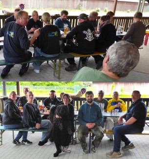 Nachdem alle Hunde in der Unterordnung und im Schutzdienst gearbeitet waren, ging es nach der offiziellen Verabschiedung, zum gemütlichen Teil über, wo noch das ein oder andere Thema zur